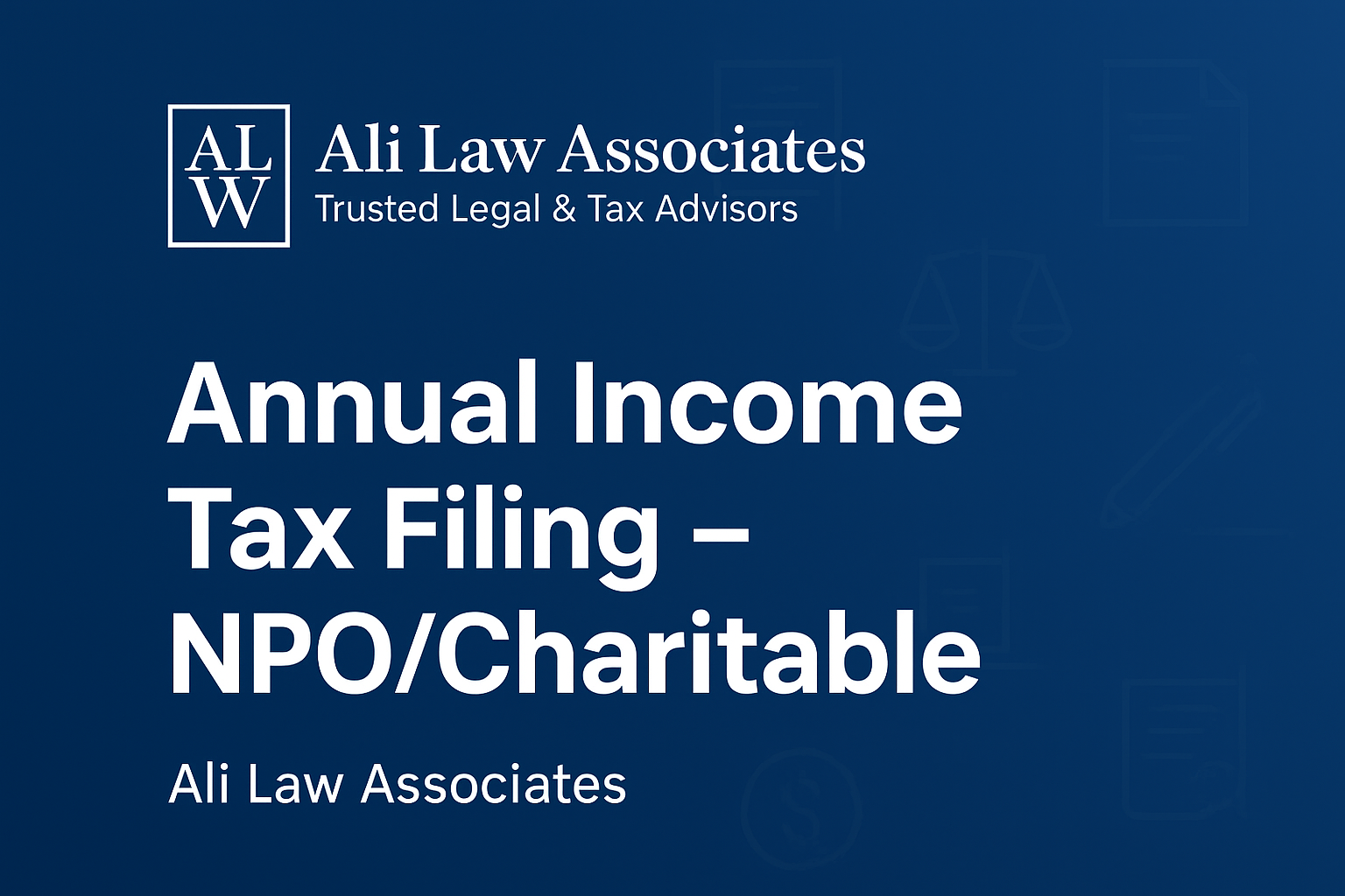 👉 If you run a Non-Profit or Charitable Organization and need help with annual tax filing, contact Ali Law Associates today and secure your organization’s future.